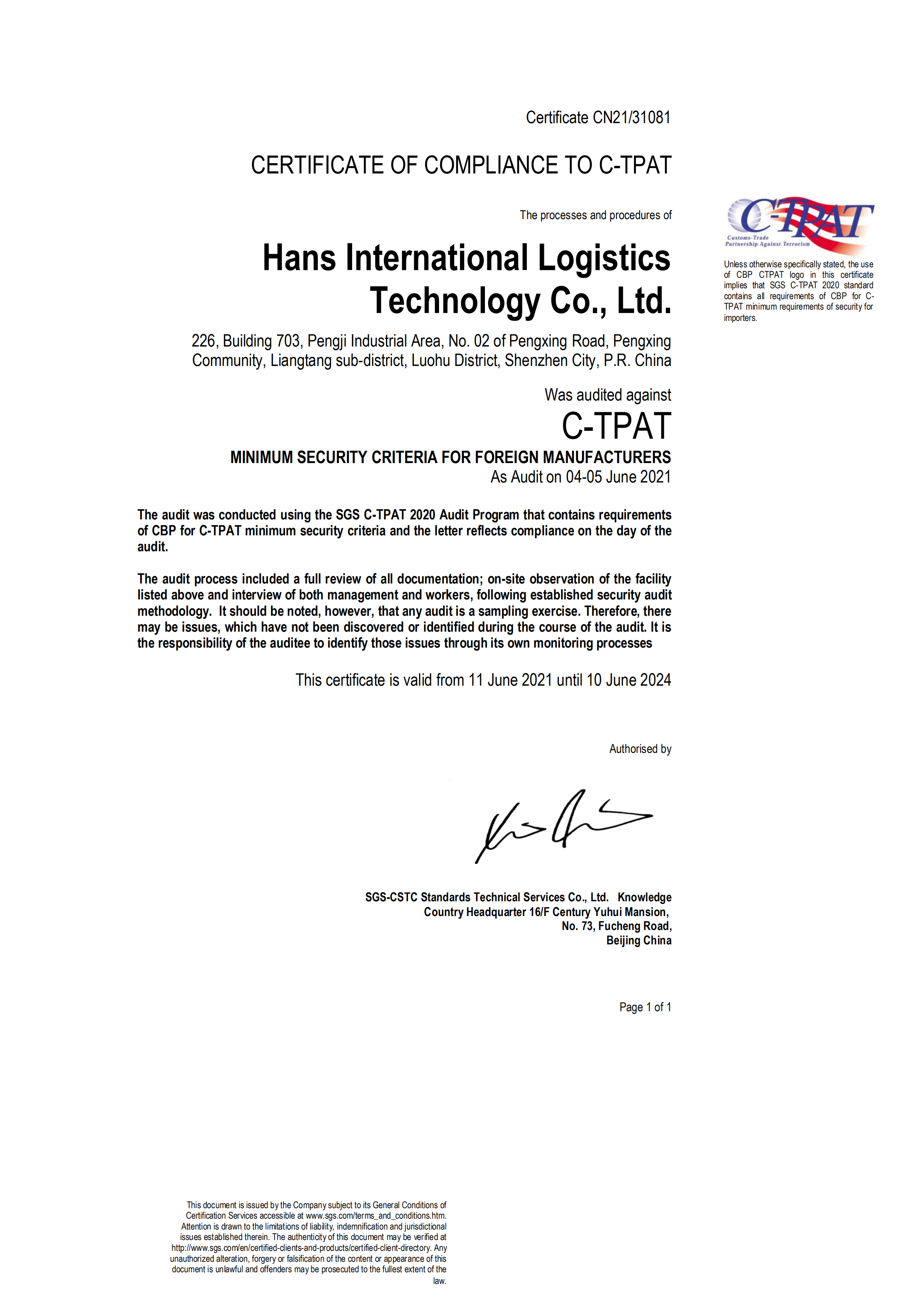 良泰物流從2018年與創(chuàng)思維合作至今,年年助力其通過GSV反恐認(rèn)證。