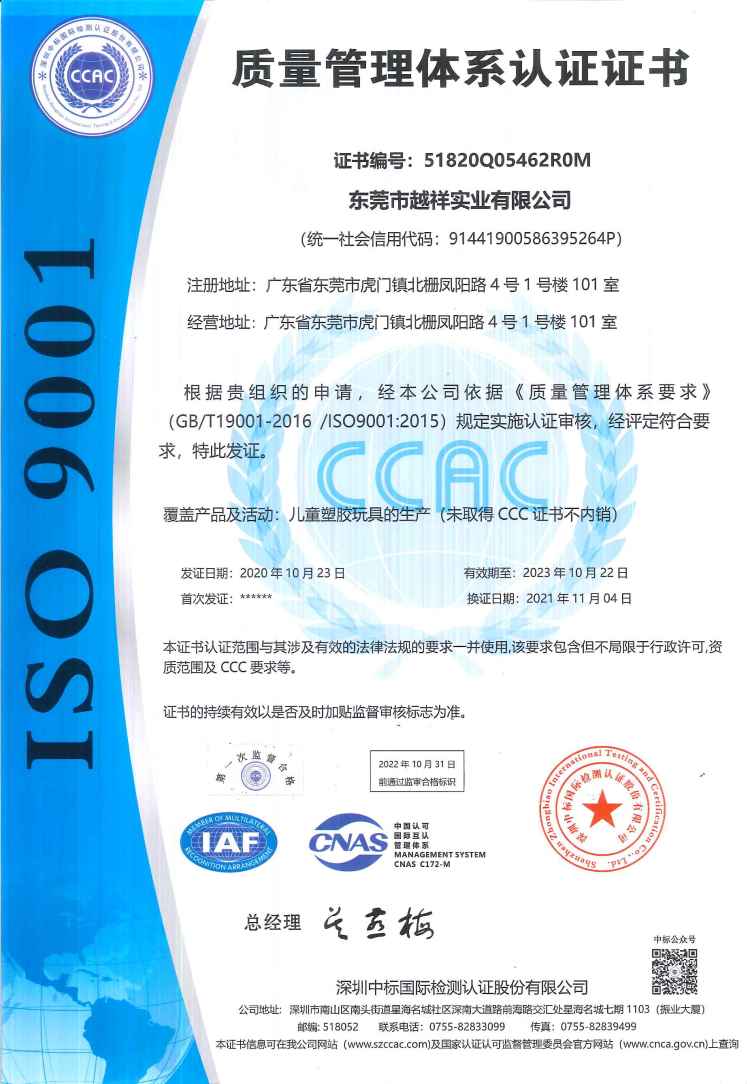 祝東莞市越祥實(shí)業(yè)有限公司通過(guò)ISO9001質(zhì)量認(rèn)證、ISO14001環(huán)境管理體系認(rèn)證